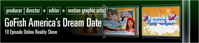 - Online Reality Show For eight weeks I produced an episodic online reality show for GoFish.com. Including teasers and the winners wrapup, 10 episodes were created. Each week, we would shoot an on camera host in front of a greenscreen on Mondays, edit together user submitted videos, composite the live action with motion graphics, do audio sweetening, encode for the web, and then post the show online on Wednesday. WATCH